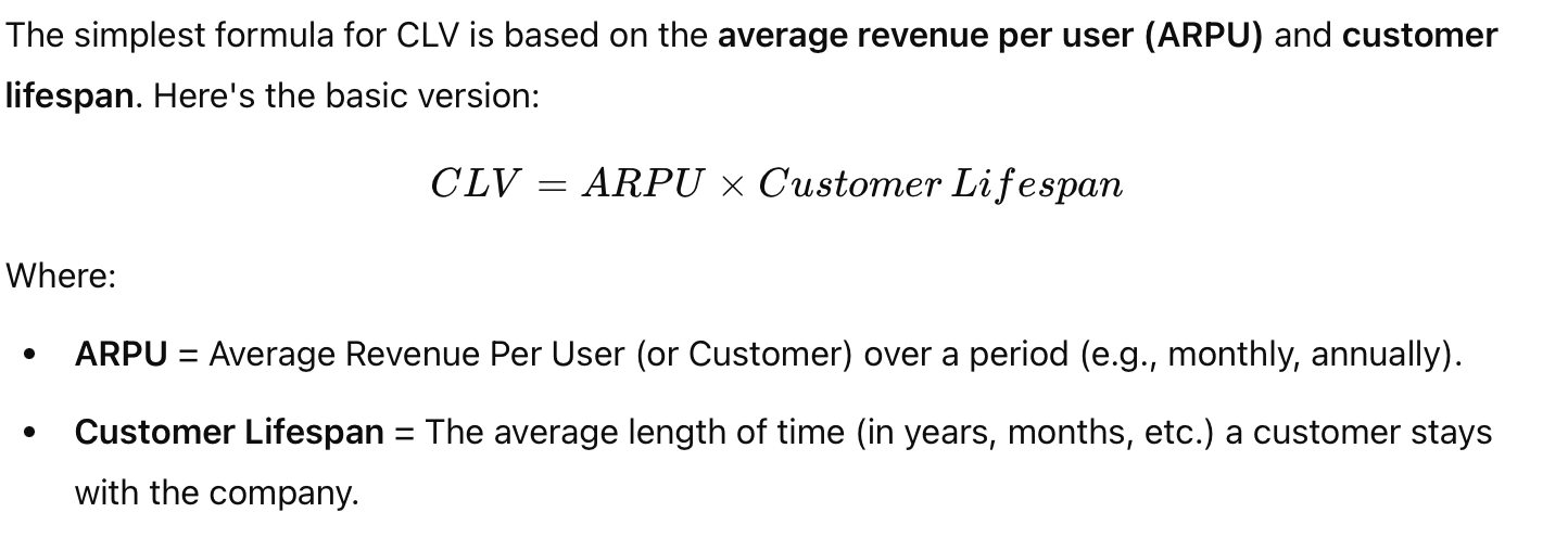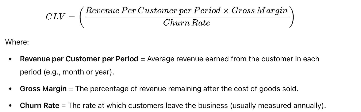 Formula for Customer Lifetime Value: